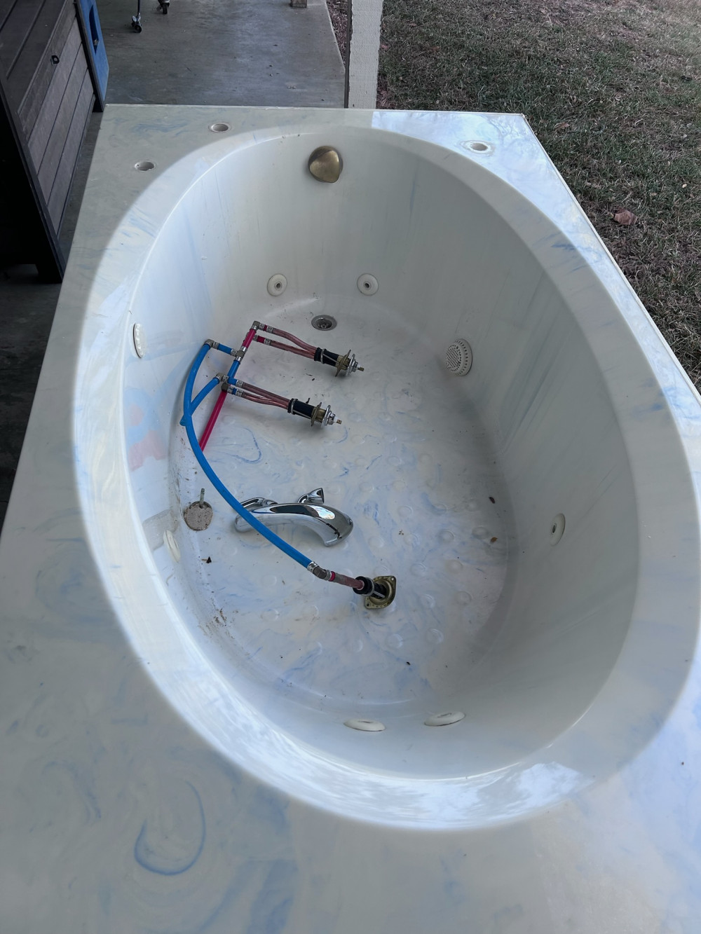 Marble Jacuzzi bathtube 73 by 43 inches, Moen faucets, great codition. Blue marble Jacuzzi bathtub 73 inches/42 inches also could be made smaller if needed. Moen faucets in good condition, plus splash board will be sent also. great shape and used small amount. thanks