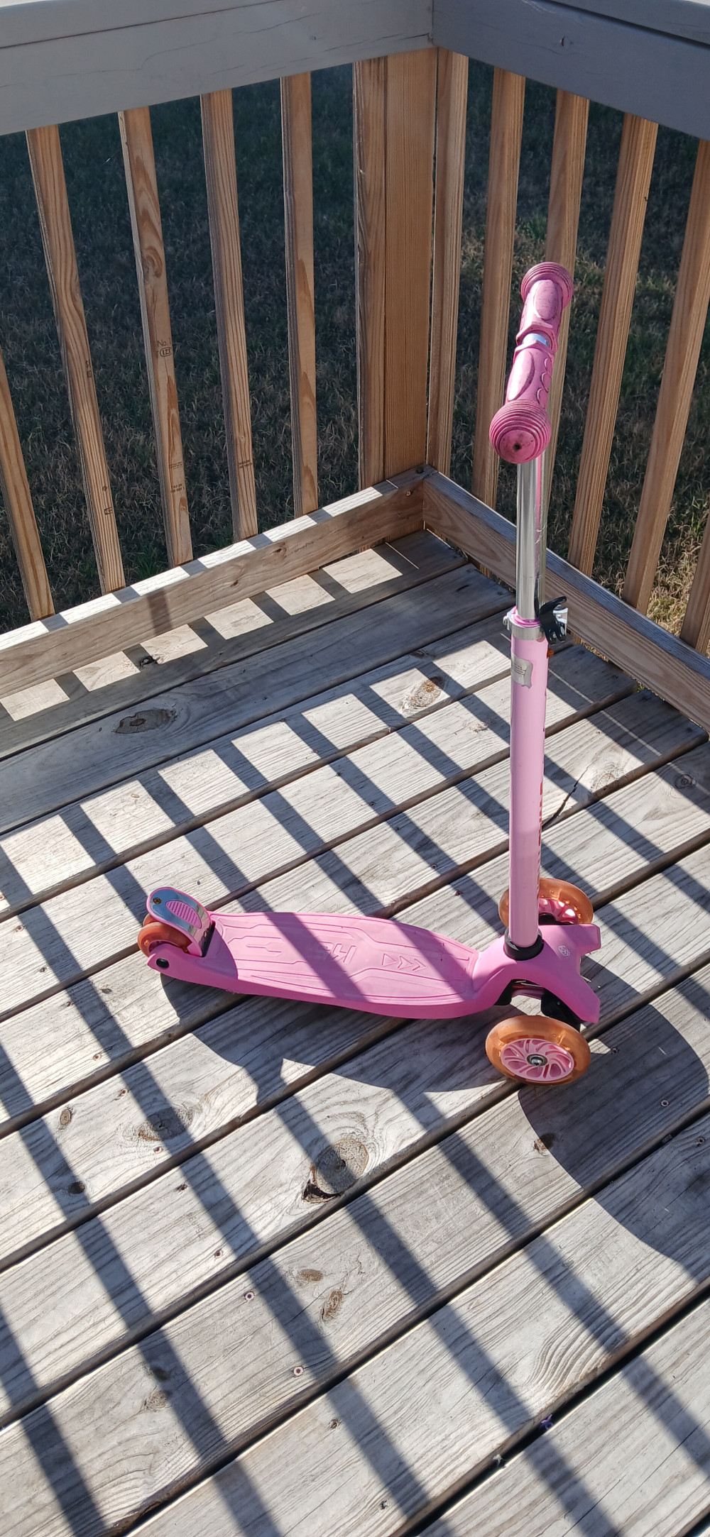 Pink scooter, used condition. Needs a good wipe down. Mainly for toddler kid size, as it is smaller than a regular scooter (has 3 wheels instead of 2). No delivery, No shipping, pickup only in North Bryan.