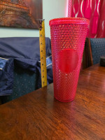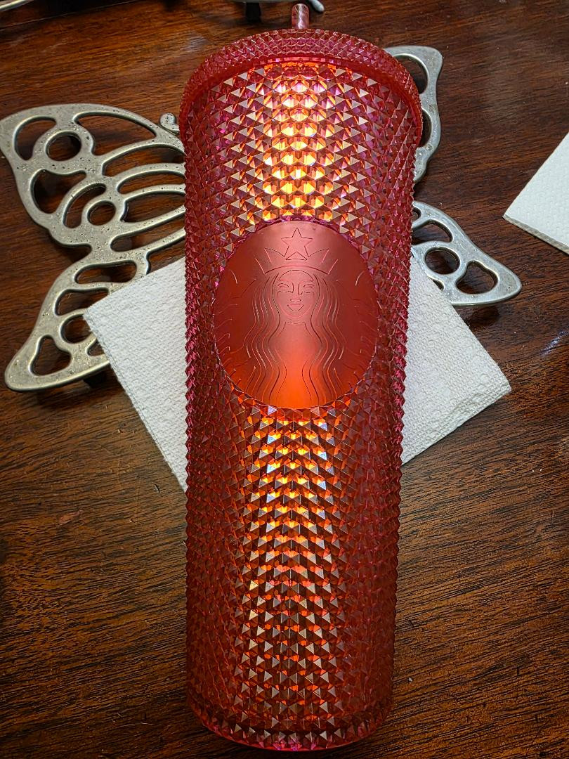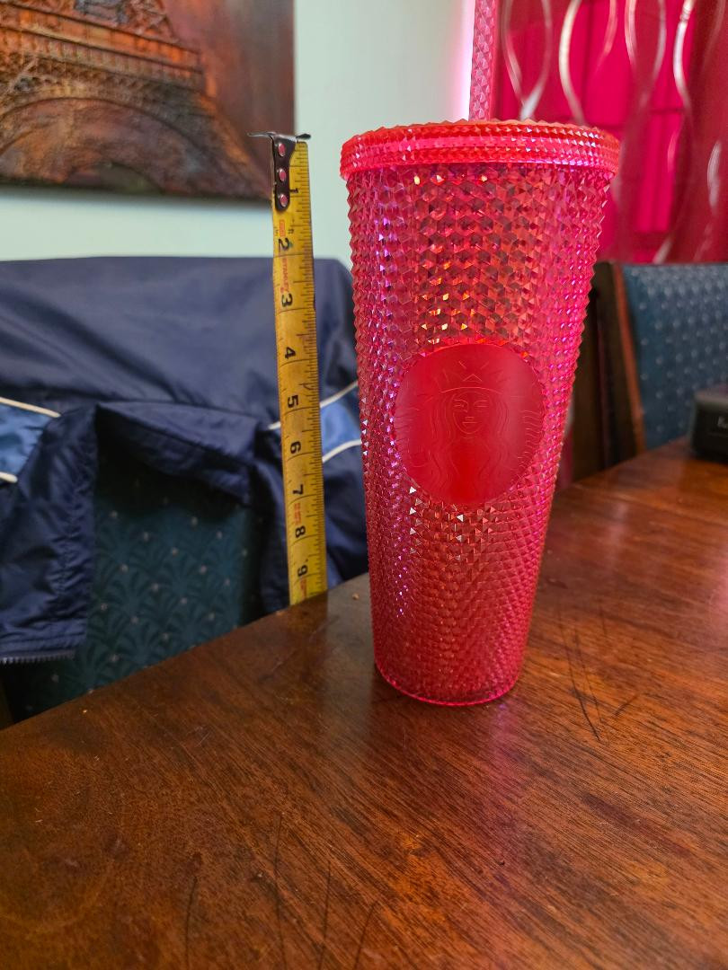 This is a brand new, never used Starbucks 24 oz red studded cold cup tumbler.
