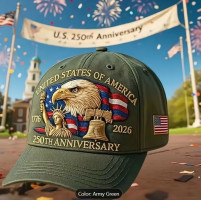United States of America 250th Anniversary Commemorative Baseball Cap, Lightweight PVC-Coated Patriotic Hat with 50-Star Eagle Statue of Liberty & 4-Leaf Clover Design, All-Season Comfort Bin