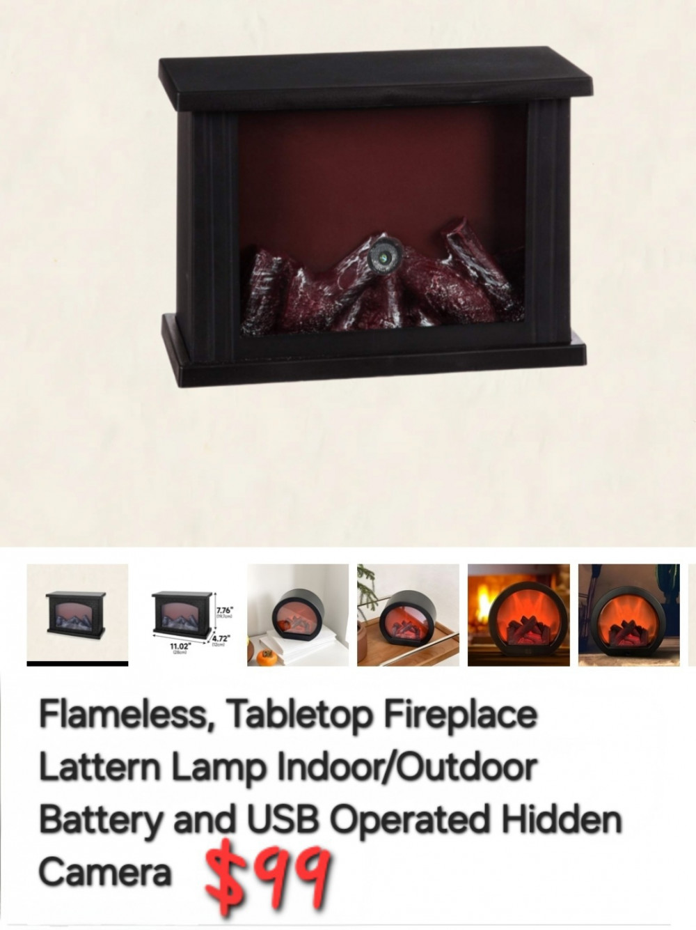- a portable electric fireplace lantern or tabletop artificial LED fireplace with Wifi Hodden Camera.