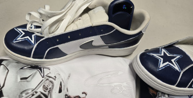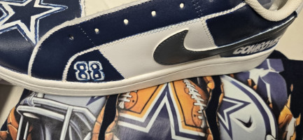 - Custom (1of1) designed Dallas Nike Courts with white traditionalsho strings. Painted with Angelus leather acrylic paint, treated and sealed from moisture.