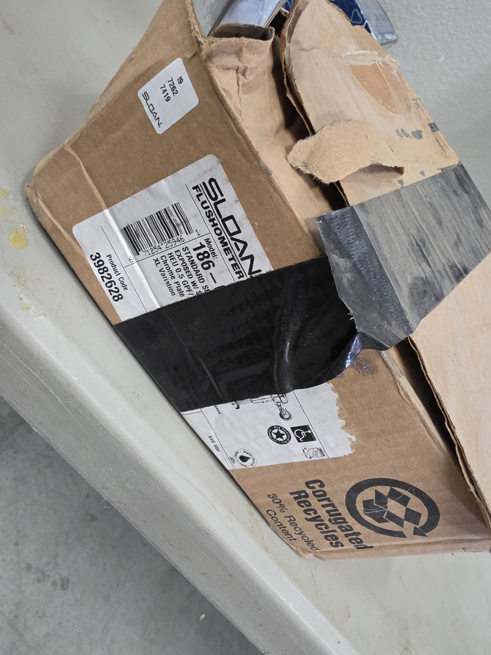 Sloan auto faucet in busted box