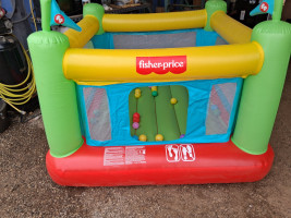 Fisher Price bounce house for kids. Measure 5' x 5' and about 4' tall. Plugs into the wall and inflates and deflates itself. Capacity is up to 3 children with Max Combined weight of 187 lbs. No leaks.