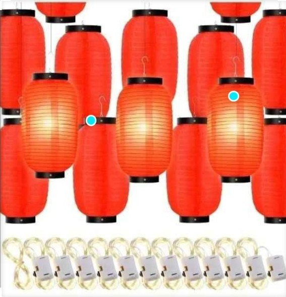What You Will Get: there are 6 Japanese lanterns and 6 battery operated string lights in the package, enough quantity for you to decorate new year party, spring festival, lantern festival, wedding and other indoor and outdoor places Sturdy Material: the Japanese style red paper lantern are made of stable steel wire frame and quality silk cloth, tough and firm, not easy to break or fade; You can use them with battery operated lights to emit bright warm red lights at night Large Size: each red hanging lantern measures about 20 x 35 cm/ 7.87 x 13.78 inches, large enough to attract attention; It comes with 20 LED fairy light with a length of 2 meter/ 6.56 ft, which has a wide light range and can be easily noticed from a distance Enjoy DIY: you can write, draw or paste matched sticker on the red Chinese lanterns, making different lanterns with your friends and family members, improve DIY ability and enhance relationship Easy to Use: these hanging Japanese party decoration can be folded and stored when not in use, which will not take up too much space; They are reusable and can be applied for a long time