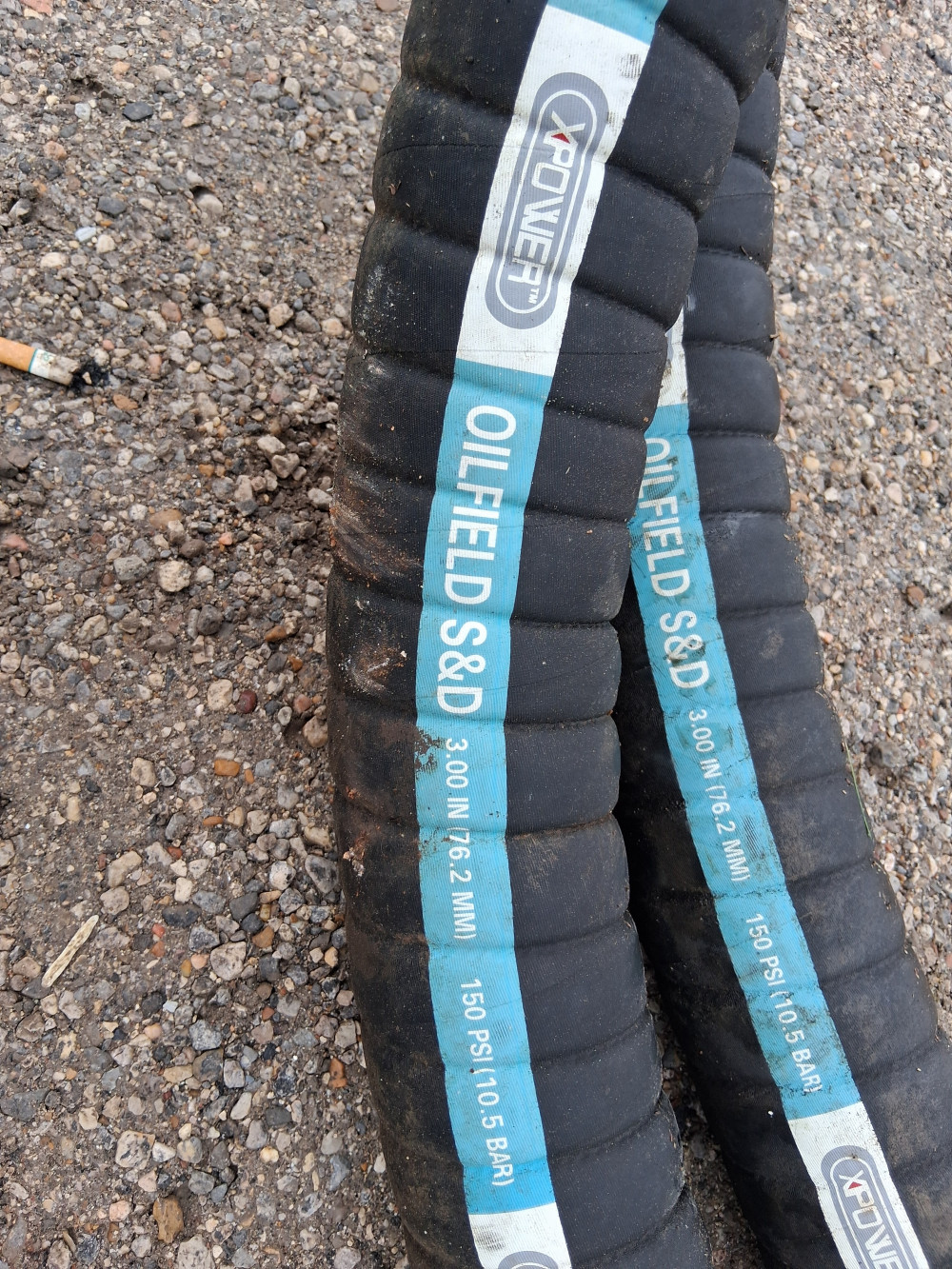 3" x 20' suction/discharge hose with cam lock connections. Basically new with clean insides