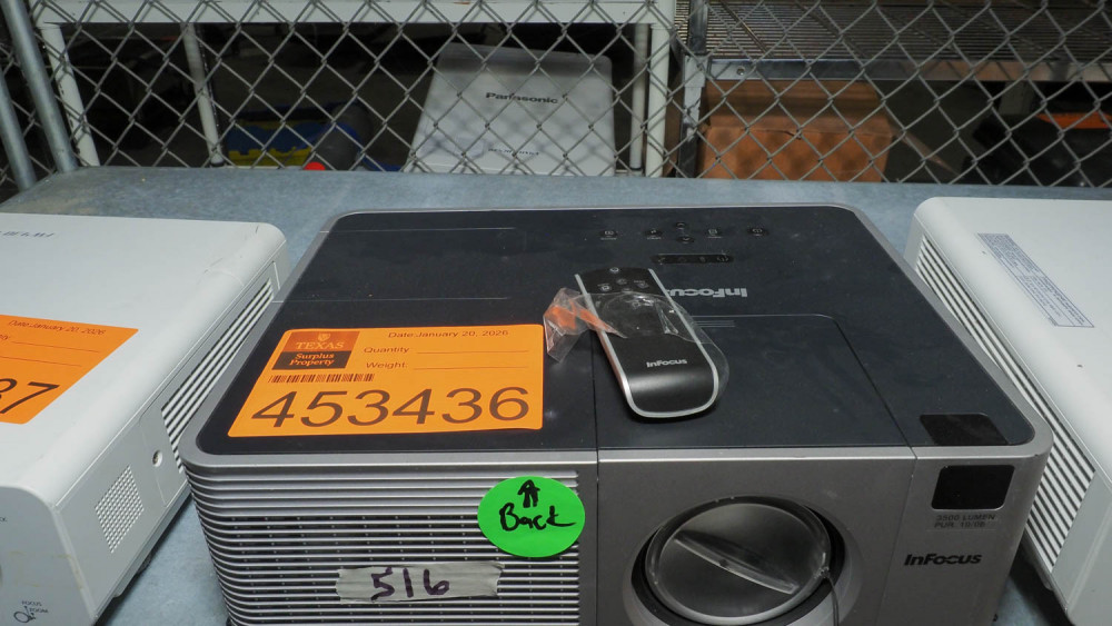 DLP projector Condition:Comes on; has 516 hours *The University of Texas at Austin makes no claim of physical or mechanical , and functionality of items available through SWICO Auctions. All items are sold “As is, where is”. It is the sole responsibility of the bidder to physically inspect items before bidding and assume all risk. Photos and descriptions are for preview only. All sales are final and no refunds will be issued. Please refer to the SWICO “Terms of Service” in which you have agreed to.