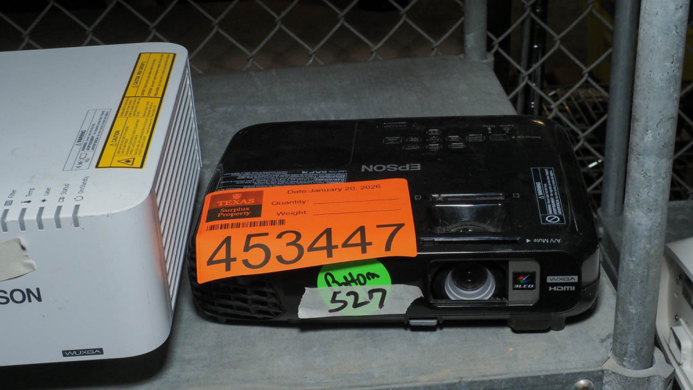 3LCD projector Condition:Comes on; has 527 hours *The University of Texas at Austin makes no claim of physical or mechanical , and functionality of items available through SWICO Auctions. All items are sold “As is, where is”. It is the sole responsibility of the bidder to physically inspect items before bidding and assume all risk. Photos and descriptions are for preview only. All sales are final and no refunds will be issued. Please refer to the SWICO “Terms of Service” in which you have agreed to.