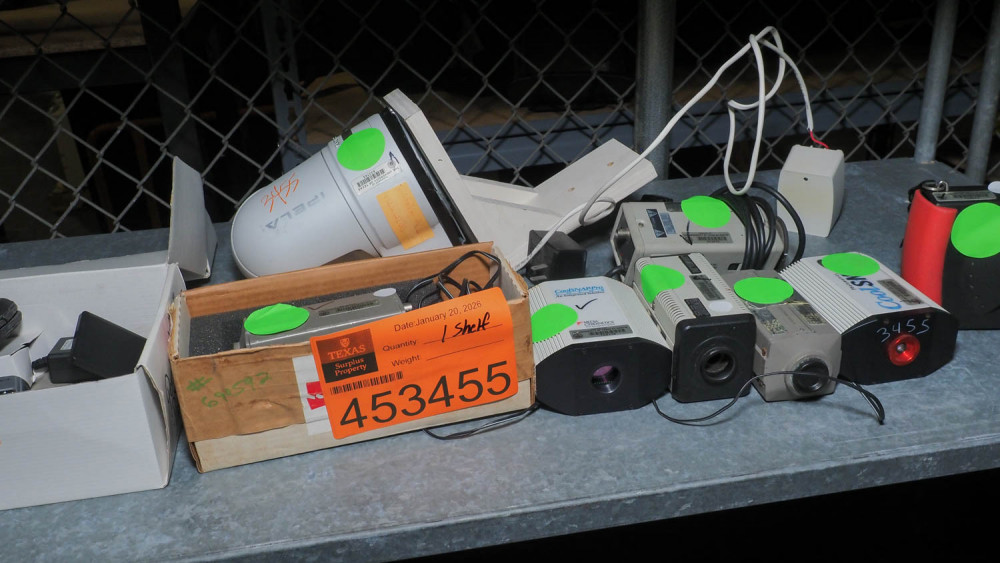 Includes Redlake Imaging MotionMeter; Cohu solid state cameras; Panasonic cameras; Sony PTZ camera; Mobotix surveillance camera Condition:Condition unknown *The University of Texas at Austin makes no claim of physical or mechanical , and functionality of items available through SWICO Auctions. All items are sold “As is, where is”. It is the sole responsibility of the bidder to physically inspect items before bidding and assume all risk. Photos and descriptions are for preview only. All sales are final and no refunds will be issued. Please refer to the SWICO “Terms of Service” in which you have agreed to.