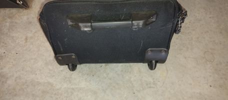 Ozark Trail rolling bag with handle all zippers are working. The handle dose work but if you pull it all the way out it will come out.