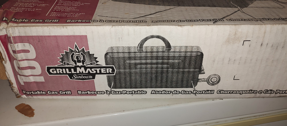 Grill Master Propane or Charcoal grill Travel size still in box never been used sitting in storage for along time.