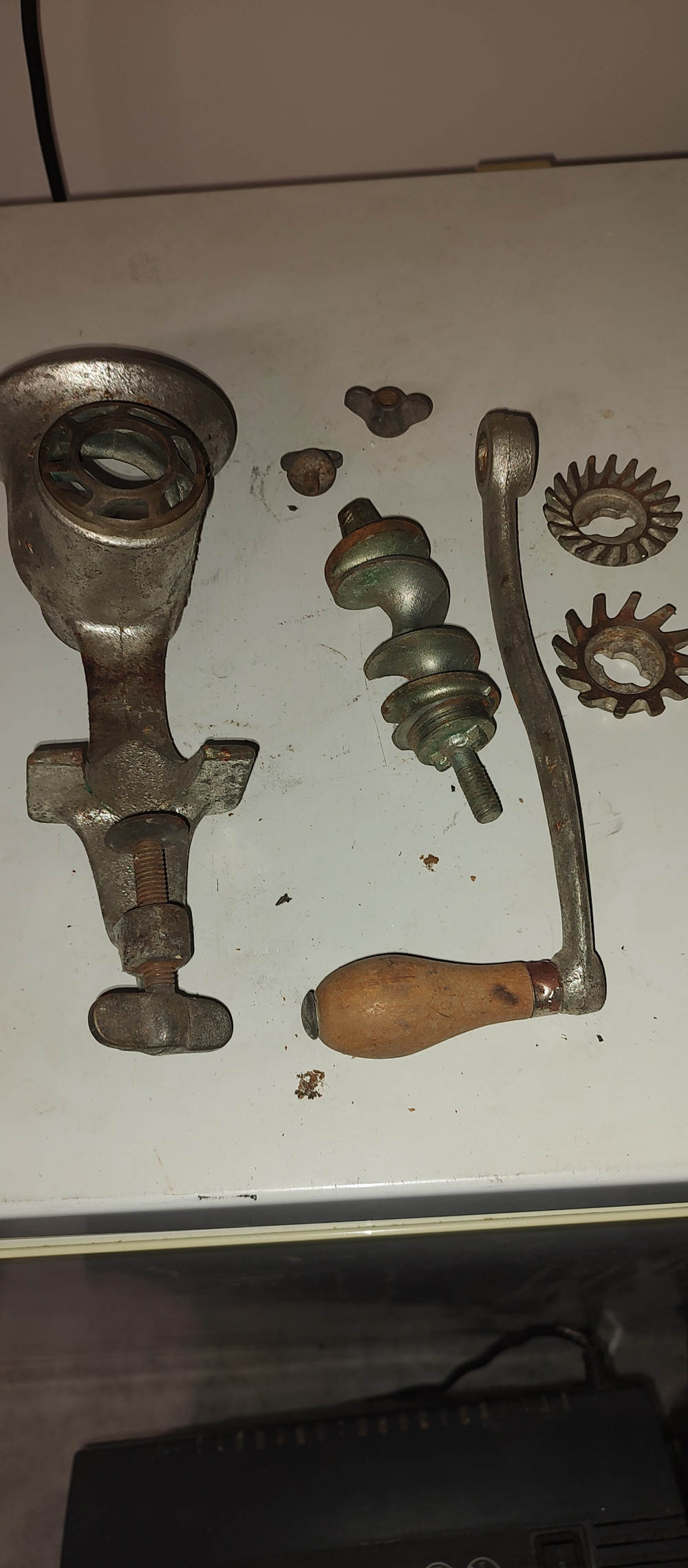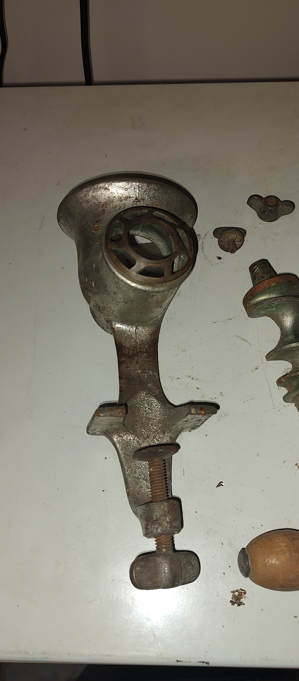 Antique Meat Grinder not sure all the parts are there but this is what I have.
