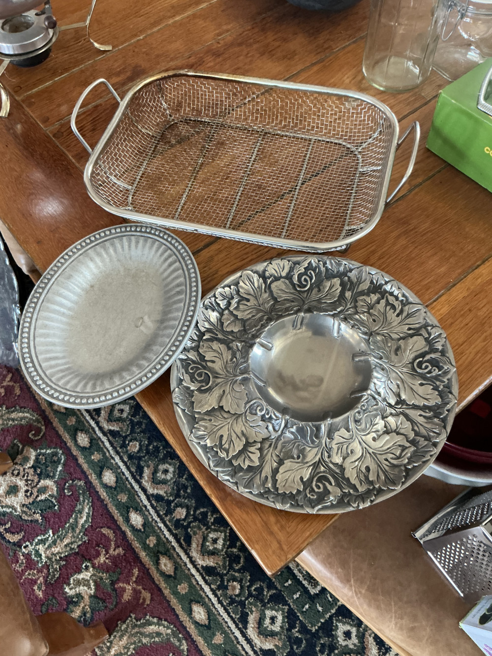 Heavy aluminum 12” chip & dip tray, Wilton tray and a bread basket.
