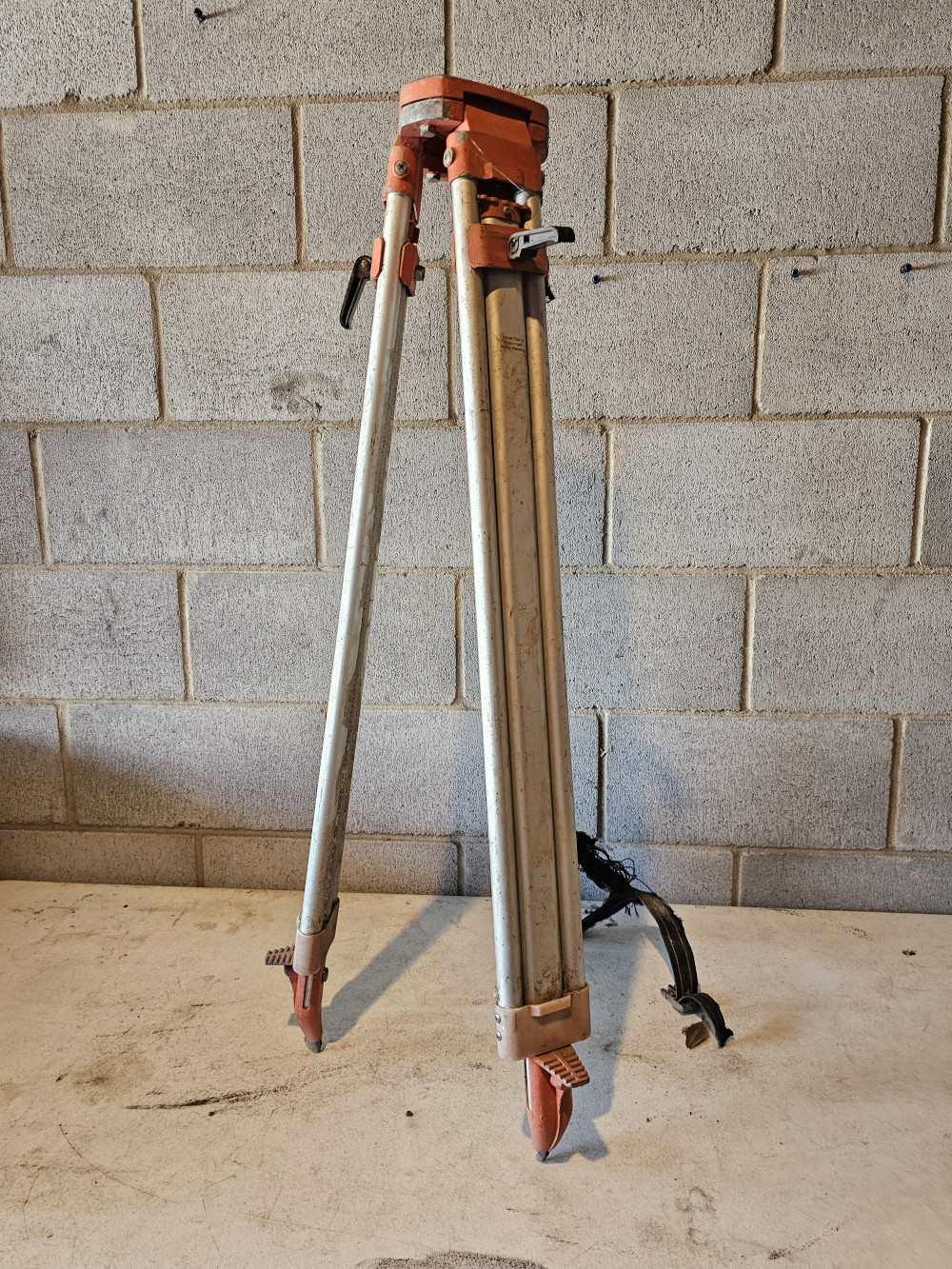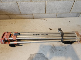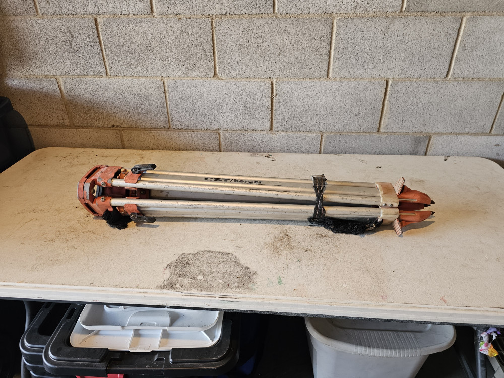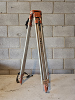 aluminum. used. tripod to hold laser measuring equipment for elevation changes and surveying. As is as pictured.