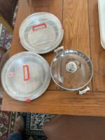 Two with plastic lids and one serving tray