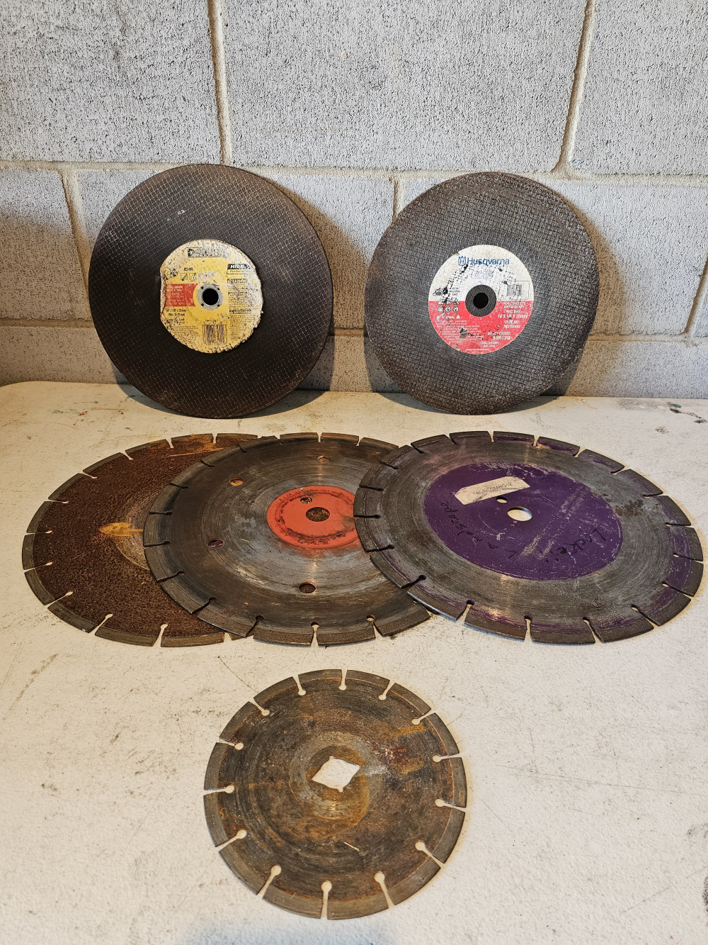 Lot# 304 - 14" diamond saw blades and abrasive (#304) Construction Equipment & Tools Farm & Ranch Equipment Shop Equipment