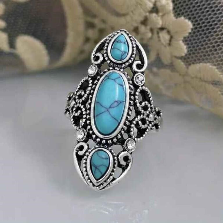 1pc Bohemian Ethnic Style Retro Synthetic Blue Turquoise Decor Ring Size 8 Great Deals and Steal