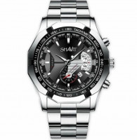 This stylish men's quartz watch features a sleek stainless steel construction, combining durability with a modern aesthetic. The analog display is accented with a striking black dial, showcasing both functionality and elegance. Designed for the business professional, the watch includes a tachymeter for speed measurement and a chronograph for precise timing. Its waterproof capabilities make it practical for everyday wear, while the stainless steel band ensures a comfortable fit on the wrist. Perfect for both formal and casual occasions, this timepiece exemplifies sophistication and fashion.