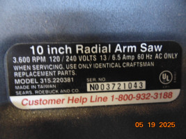 Craftsman Professional 10" Radial Arm Saw - Laser Trac S/N 03721043