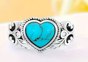 Charming Retro Heart-Shaped Synthetic Turquoise Ring, Featuring a Bohemian Style And Intricately Carved Flowers Size 6 Great Deals and Steal