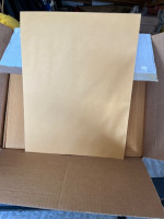 Box of large brown kraft envelopes. Flaps will need to be taped.