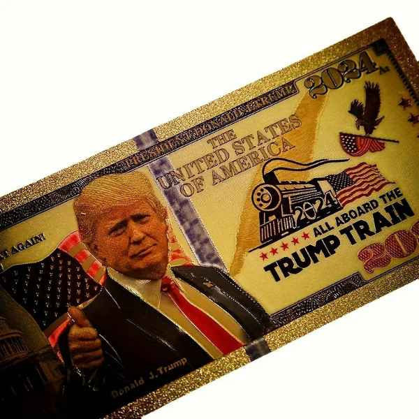 Qty of 5 Donald Trump Novelty $100 Bill and 2024 Trump Train Replica Banknote ****** Great Deals and Steal