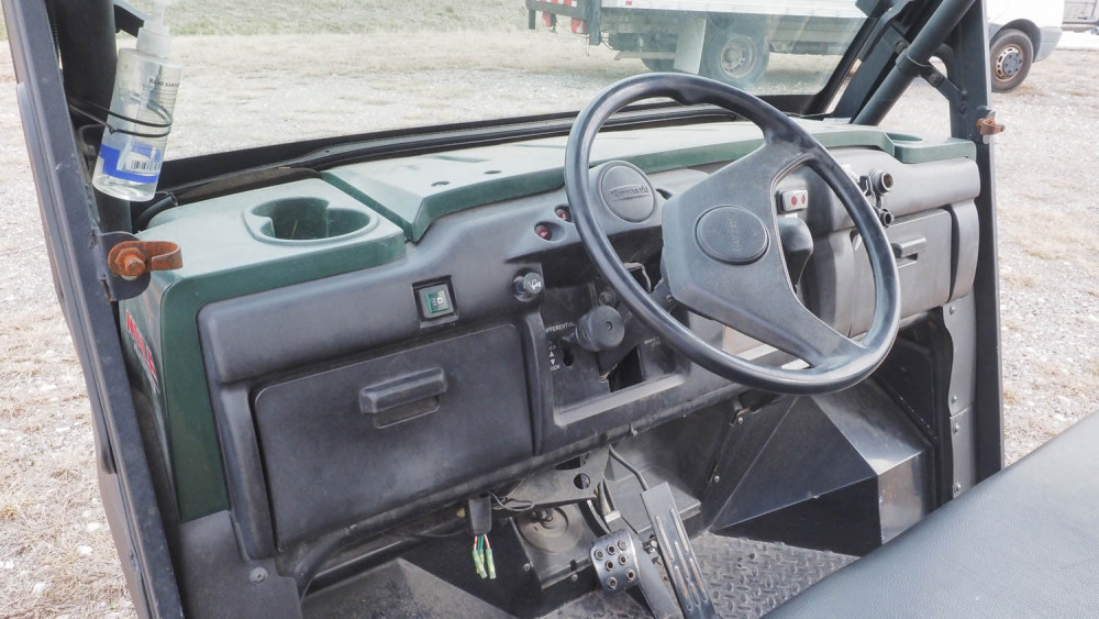 VIN: [JK1AFCP109B500710]. Kawasaki gas engine, 2WD, locking rear differential, manual dump bed. Condition:Condition: 2,807 hours. Runs and drives; needs jump start (dead battery). DFI light is on. *The University of Texas at Austin makes no claim of physical or mechanical , and functionality of items available through SWICO Auctions. All items are sold “As is, where is”. It is the sole responsibility of the bidder to physically inspect items before bidding and assume all risk. Photos and descriptions are for preview only. All sales are final and no refunds will be issued. Please refer to the SWICO “Terms of Service” in which you have agreed to.