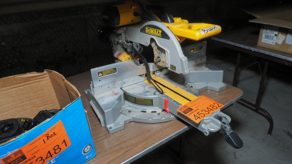 Model: DWS780. Double bevel sliding compound miter saw. Condition:Condition: Marked broken. *The University of Texas at Austin makes no claim of physical or mechanical , and functionality of items available through SWICO Auctions. All items are sold “As is, where is”. It is the sole responsibility of the bidder to physically inspect items before bidding and assume all risk. Photos and descriptions are for preview only. All sales are final and no refunds will be issued. Please refer to the SWICO “Terms of Service” in which you have agreed to.
