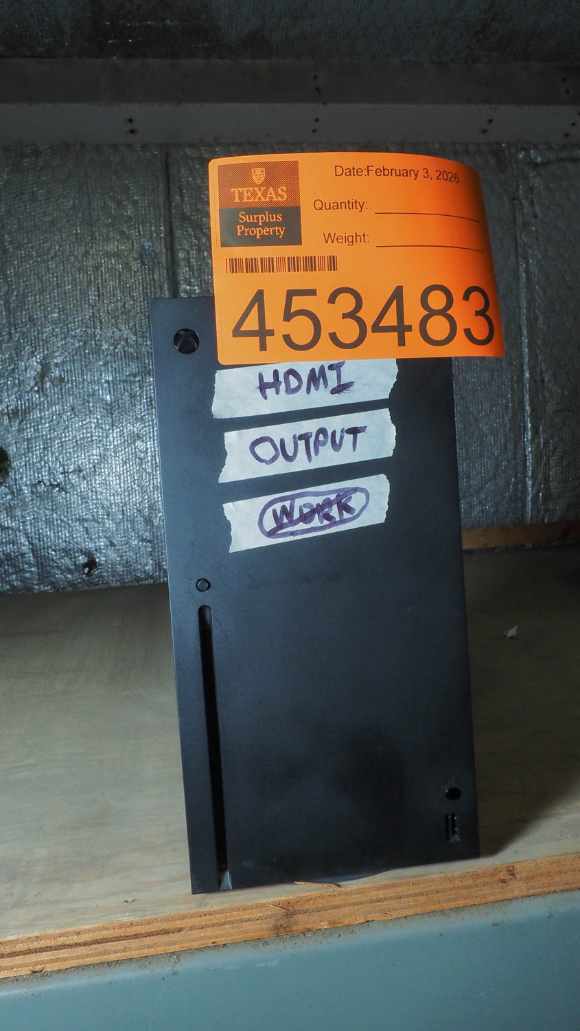 Gaming console. Condition:Condition: HDMI output does not work. *The University of Texas at Austin makes no claim of physical or mechanical , and functionality of items available through SWICO Auctions. All items are sold “As is, where is”. It is the sole responsibility of the bidder to physically inspect items before bidding and assume all risk. Photos and descriptions are for preview only. All sales are final and no refunds will be issued. Please refer to the SWICO “Terms of Service” in which you have agreed to.