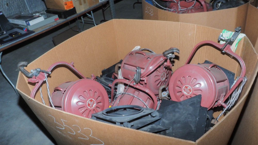 Includes: Mole Richardson, Soft Scoops, Solar Spots, can lights, barn doors, and power cords. Condition:Condition unknown. *The University of Texas at Austin makes no claim of physical or mechanical , and functionality of items available through SWICO Auctions. All items are sold “As is, where is”. It is the sole responsibility of the bidder to physically inspect items before bidding and assume all risk. Photos and descriptions are for preview only. All sales are final and no refunds will be issued. Please refer to the SWICO “Terms of Service” in which you have agreed to.