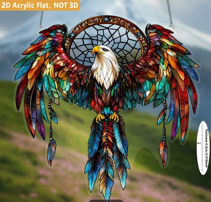 Eagle Dream Catcher Window Decoration - 4"x4" Acrylic Sign with Vibrant Colors, Intricate Feather & Bead Design Bin 1 Great Deals and Steal