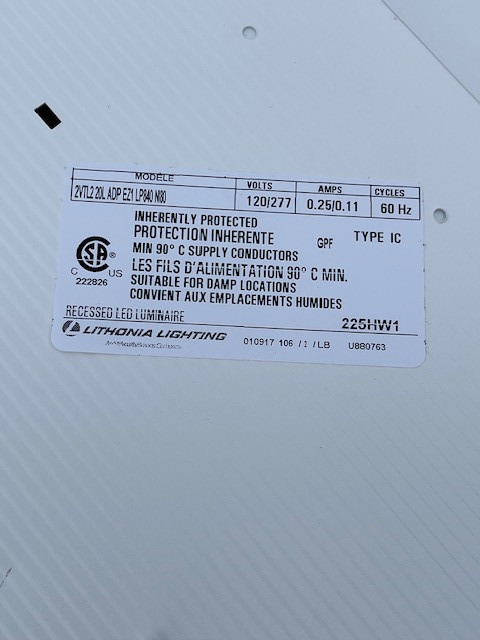 Lot of two Lithonia 24 x 24 recessed lighting fixture