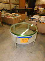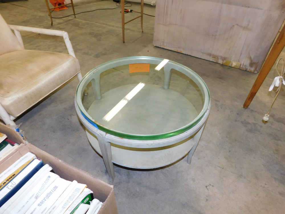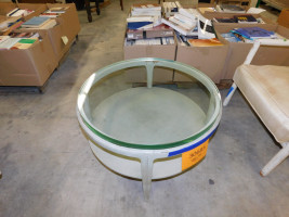 Circular Wooden table with glass top (#30685) University Of Texas At Austin