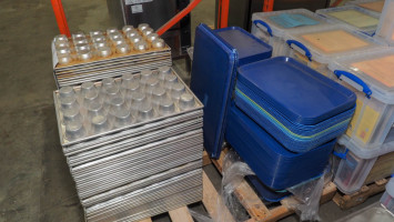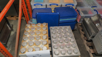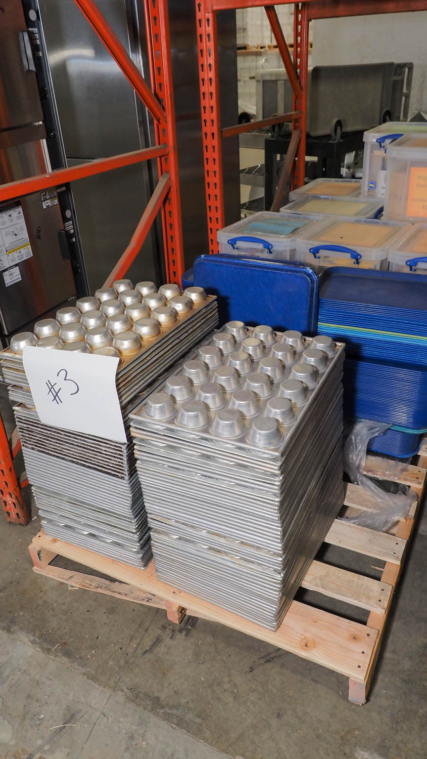 Includes (95) metal muffin pans and (170) plastic trays. Muffin pans are 24-count per sheet. Condition: Used