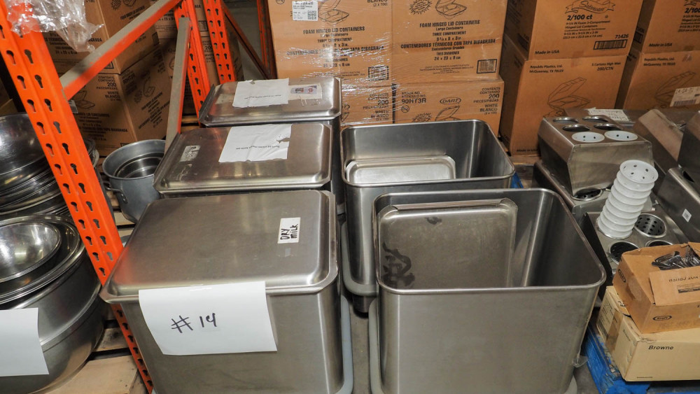 (5) Sesco Stainless Steel Food Storage Bins (#14) Bryan Isd Surplus