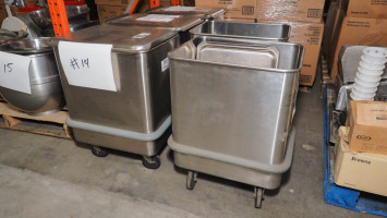 (5) Bins measuring approximately 14x22 and 16 inches deep. All bins are on rolling wheels. Condition: Used