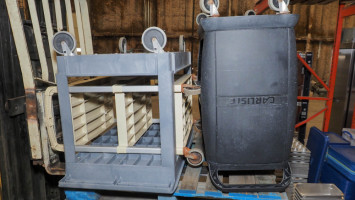 Set of (3) carts on wheels: one large(24x36x34) and two small (24x16x36). Condition: Used