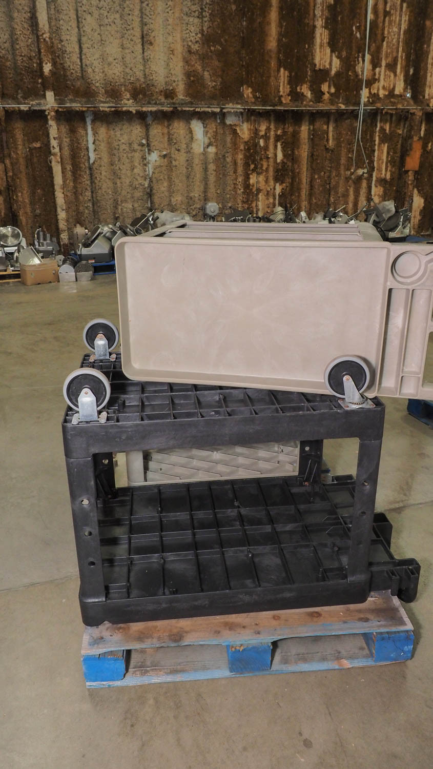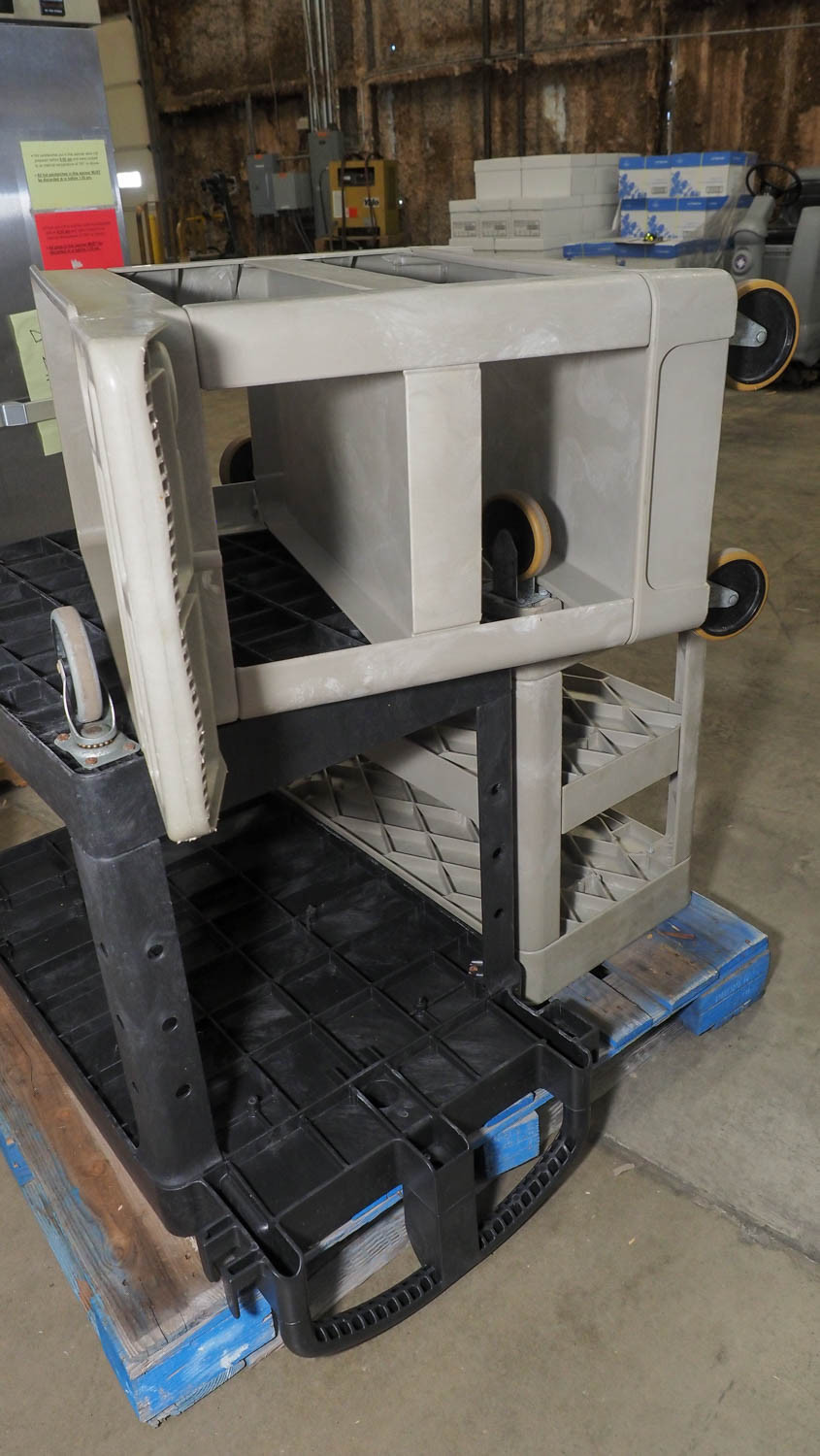 Set of (3) carts on wheels: one large(24x36x34) and two small (24x16x36). Condition: Used