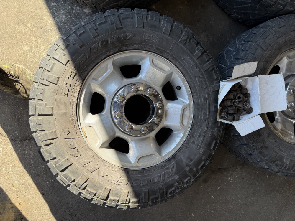 Wheels tires, Capps and lug nuts off of a 2015 F2 50 four-wheel-drive three-quarter 275/70/17