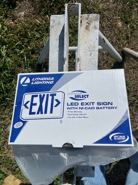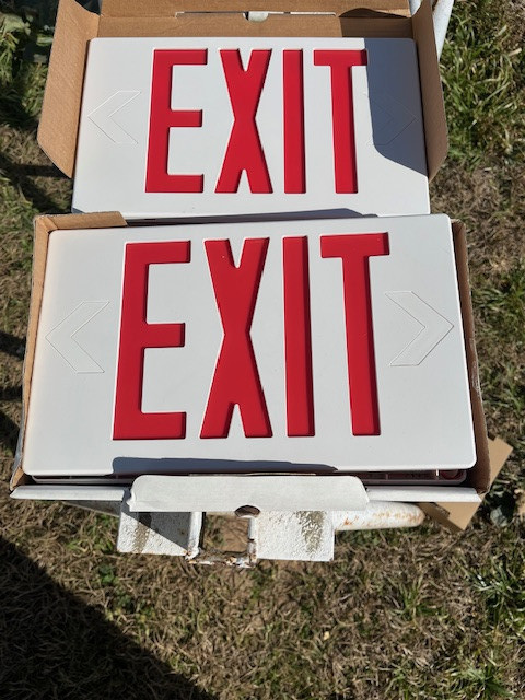 Lot of 4 Lighted Exit Signs Light Fixtures And Electric Components