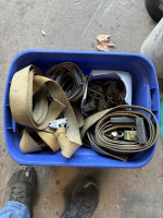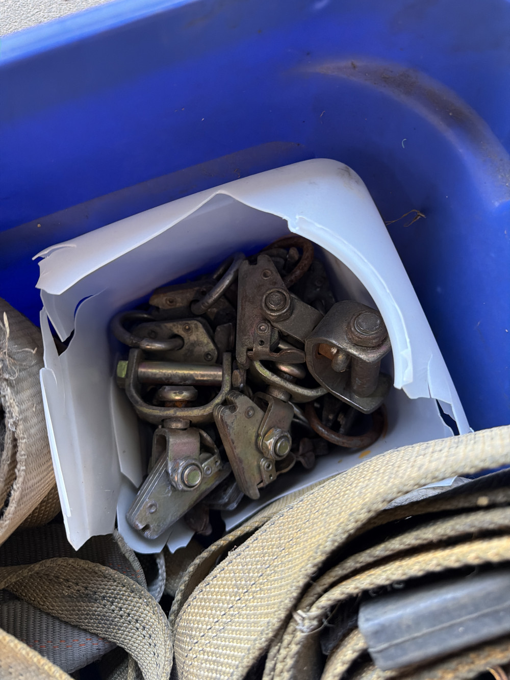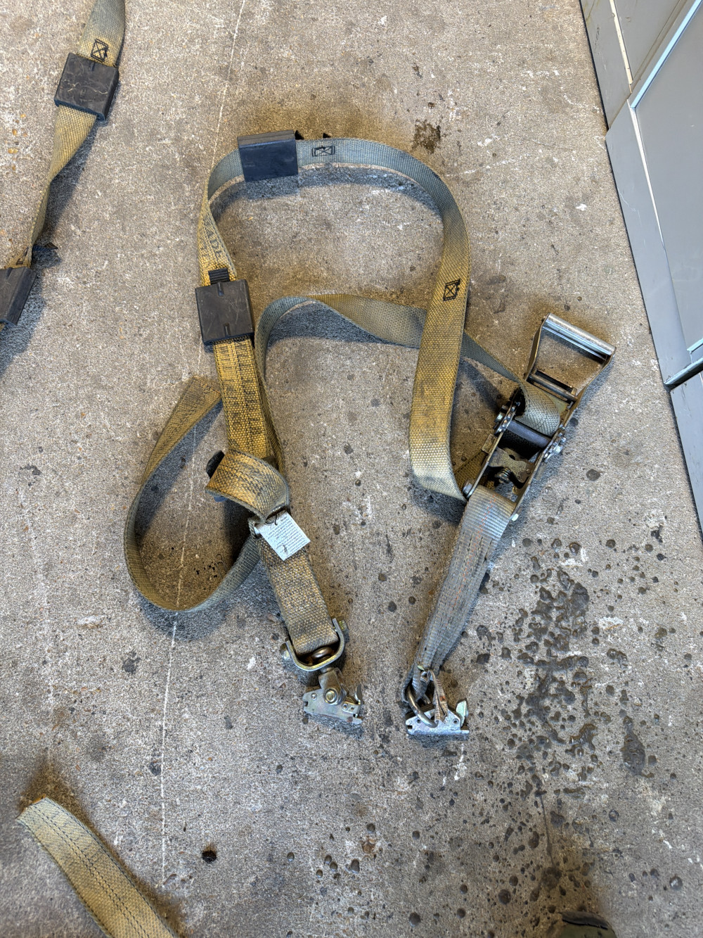 Six easy track tie down straps, crackers and straps 10 extra straps and a bucket of connectors