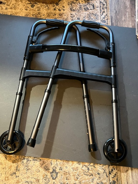 New MaxKare walker - Gray and easily folds flat.