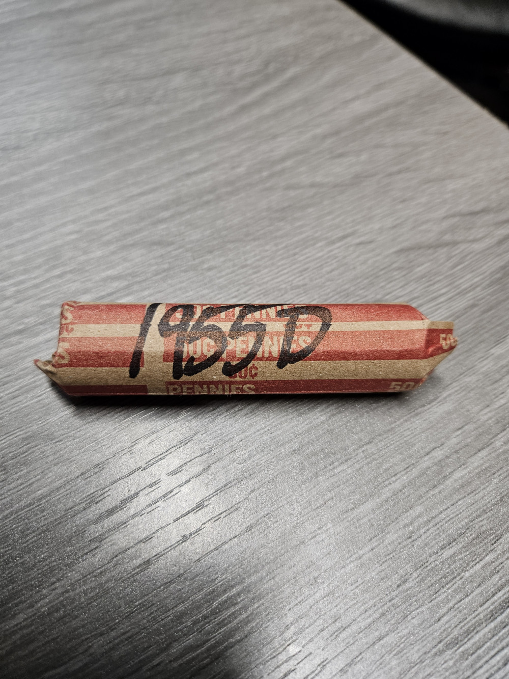 1 Roll of 1955 D Copper Lincoln Wheat Cents Coins & Currency