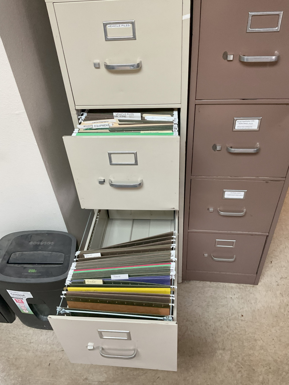 Filing cabinet with hanging folders Texas Boll Weevil Eradication Surplus