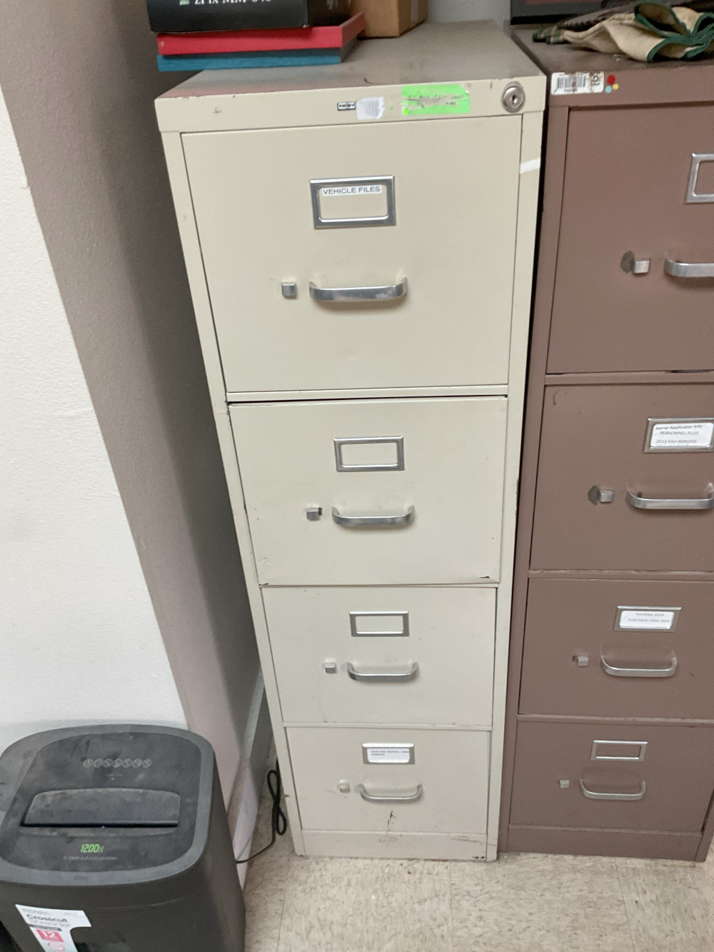 4 drawer filing cabinet with hanging folders in it. I do not have the key, but it is unlocked. Located in Caldwell TX.