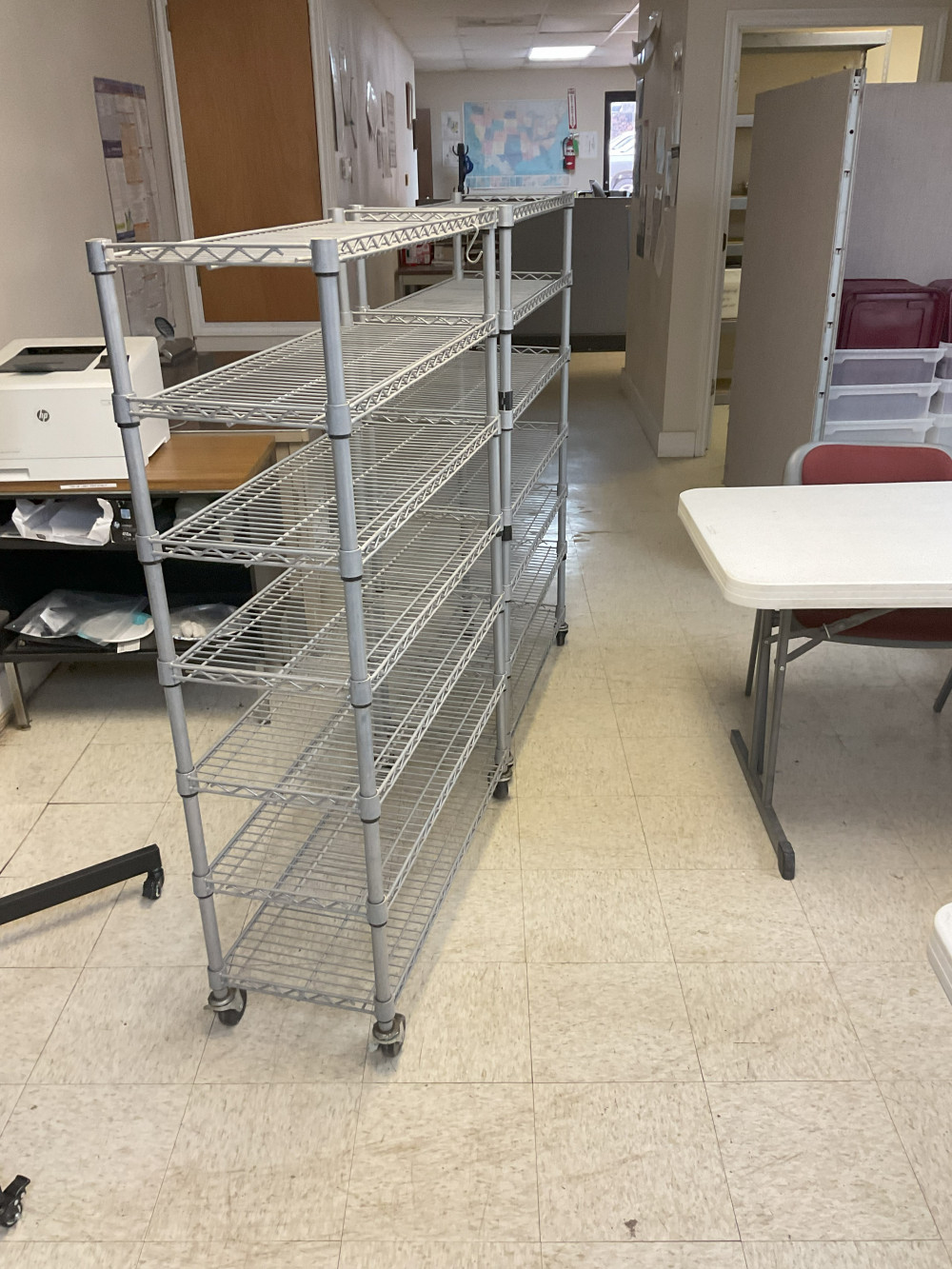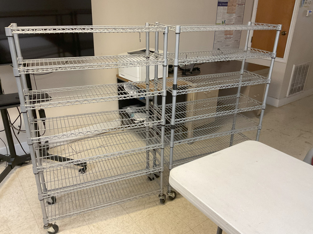 2 rolling shelves 14 inches deep, 56 inches tall, 3 feet wide