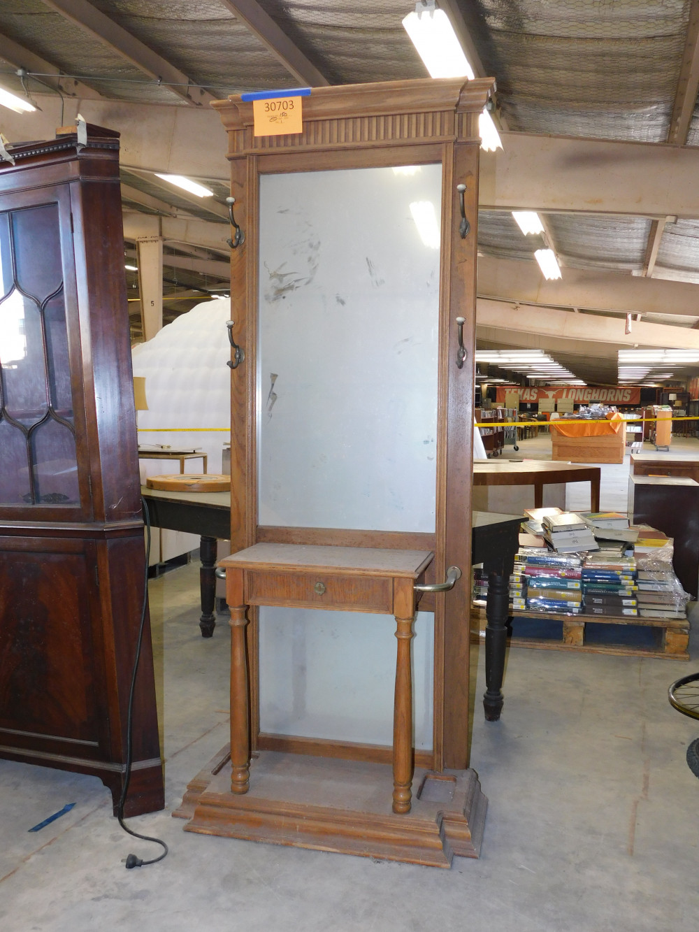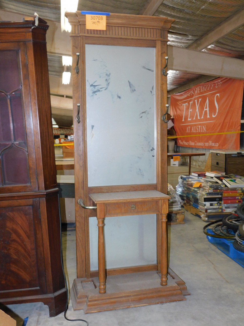 Antique Hall Tree with mirror and coat hooks (#30703) University Of Texas At Austin