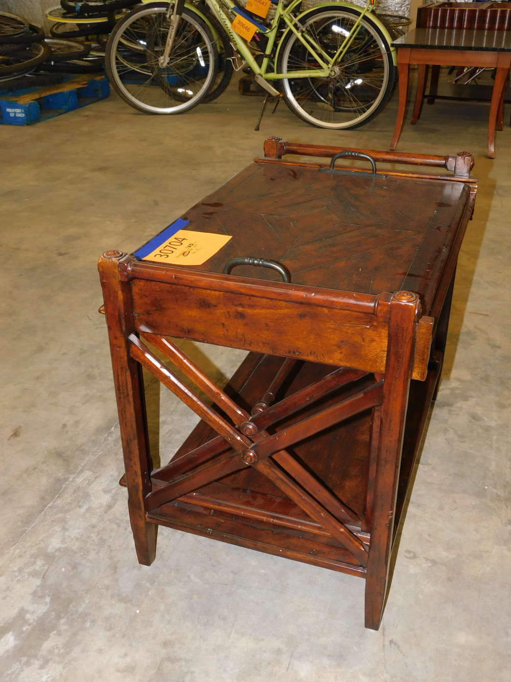 Theodore Alexander Bromwich Nesting Side Table with Serving Tray. Side table and moving tray are present and show age related wear.