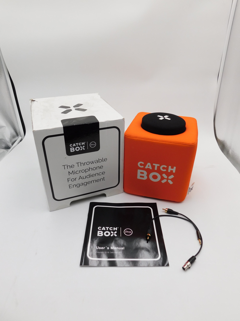 Catch Box Throwable Microphone. Includes cables and manuals. Powers on, but otherwise untested.