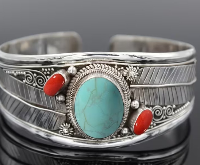 Open Bangle | Adjustable Vintage Dark Style High-End with Turquoise Inlay and Fashion Bracelet, Unique Minimalist Bracelet